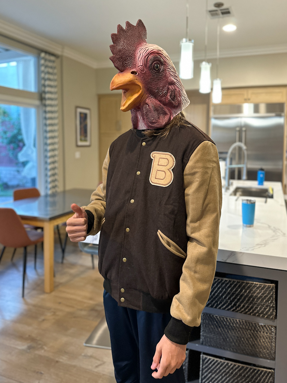 He has asked for this Halloween costume a handful of times so he got it as a birthday gift. And he also received a compact break maker. Just add all the ingredients and 3 hours later you have freshly baked bread! Not the typical 16 year old boy gift but he loved it!