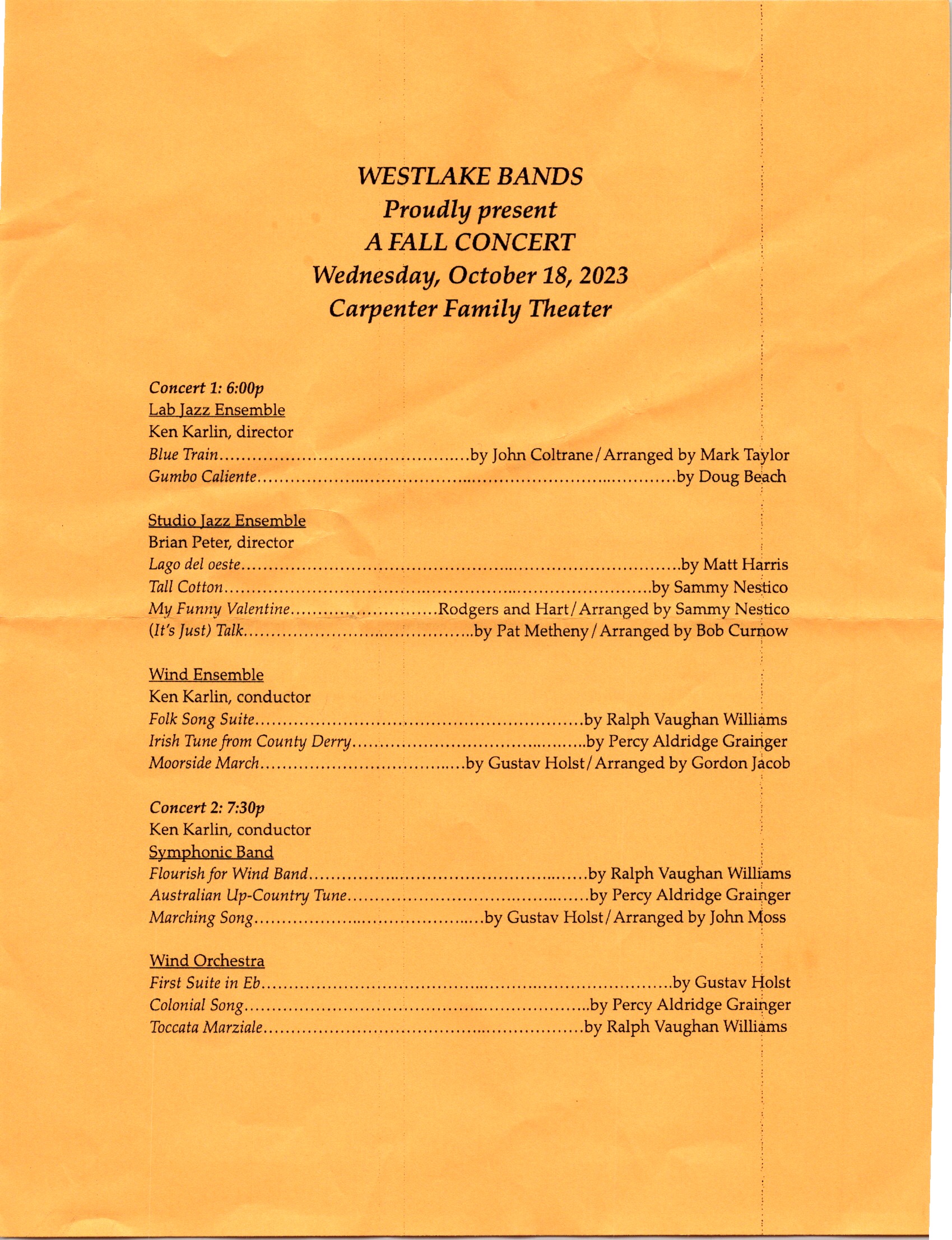 WHS had their Fall Band Concert which included both the Jazz bands and Concert bands. This was their first concert with the new band director, Ken Karlin.