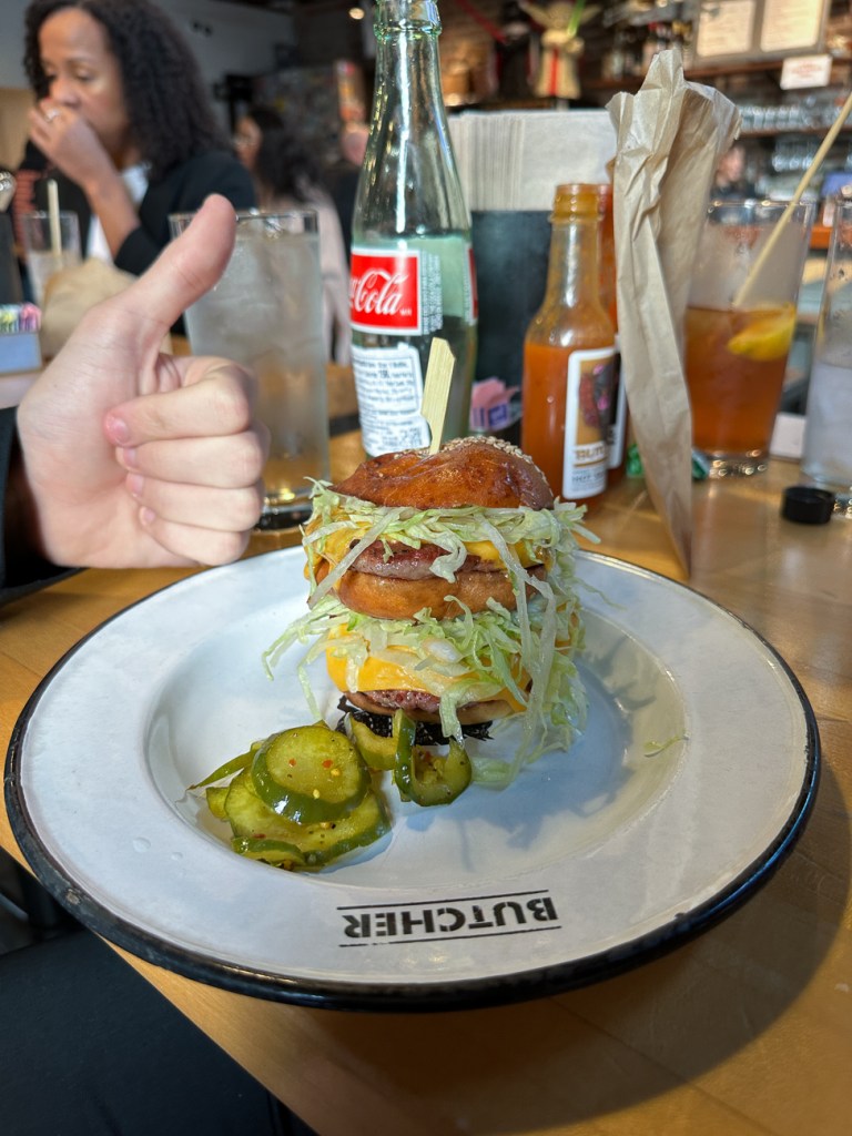 The Conrath’s arrived a couple of days before us and left ‘today’. Don asked that whenever we visit a new city, that we take Quinn on a college tour — so today we had a tour of Tulane University. We took the Street Car from the French Quarter out to Tulane. It was a beautiful school but no pictures. Then it was off to lunch on Cochon where Quinn got a Pig Mac.