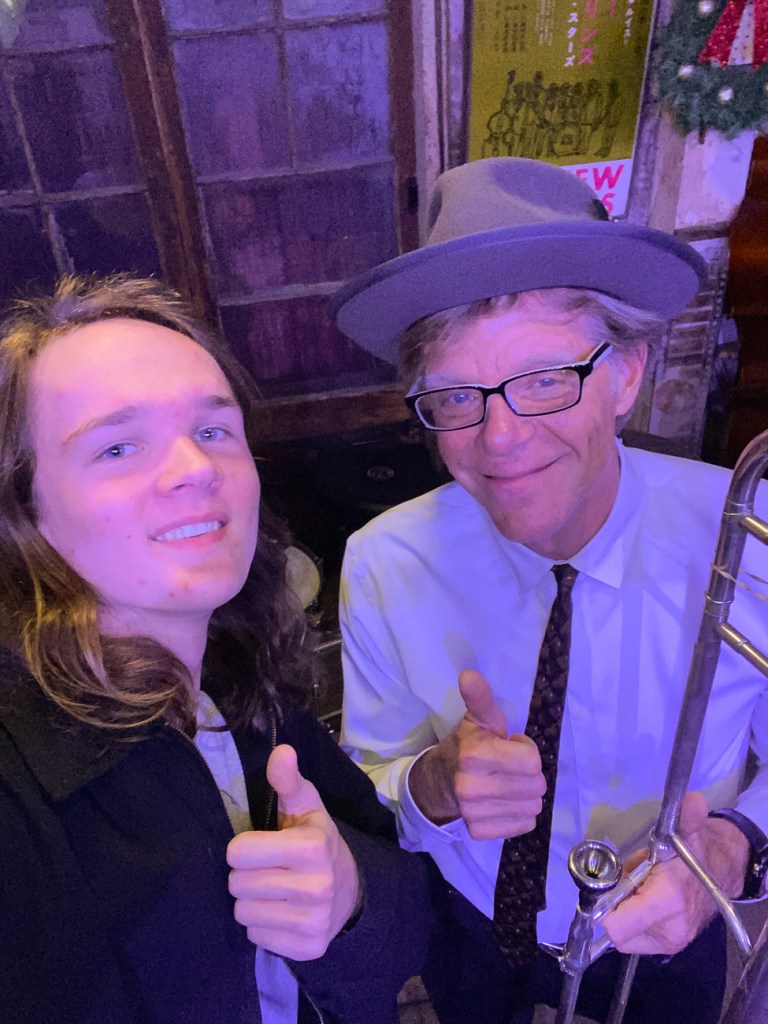 Quinn got a selfie with the trombone player Craig Klein who is a grammy winning musician.