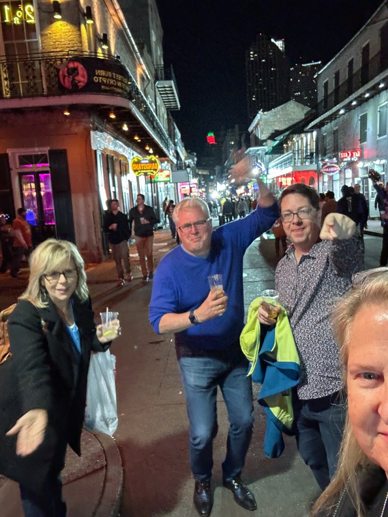 After dinner the adults went out to a local dive bar, Harry’s Corner, where we played the juke box and had some fun and then we decided to hit Bourbon Street. It was crazy because the Sugar Bowl had just ended so there was a PARTY going on!