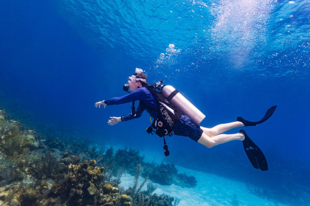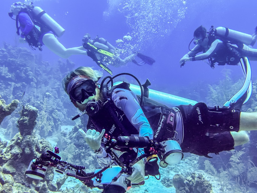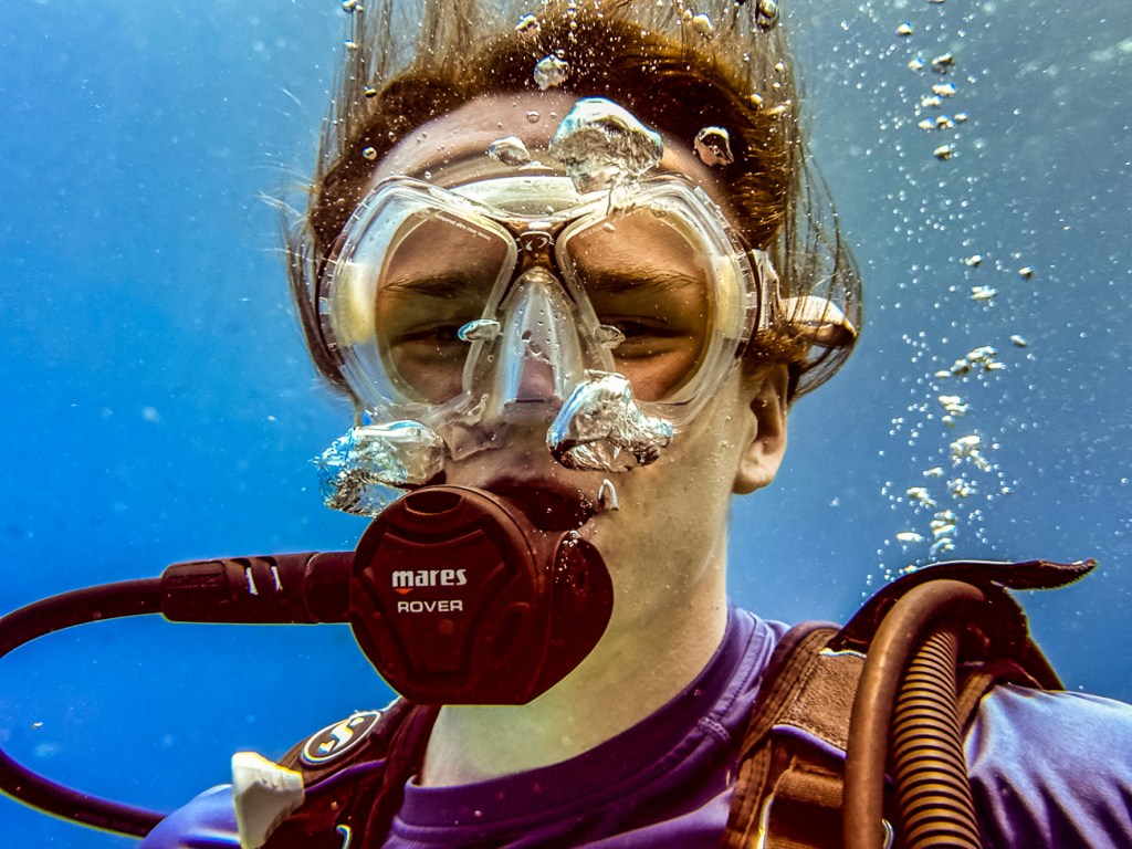 Pictures by James the pro photographer. Quinn was constantly running out of air first and having to come up before everyone else. And then I noticed in these pics that he seems to have a leek in the back of his tank. You can see the little trail of bubbles behind him.