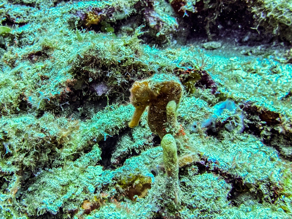 We finally found a Seahorse! It was so tiny just clinging to a coral at the bottom. It was pretty exciting to see!