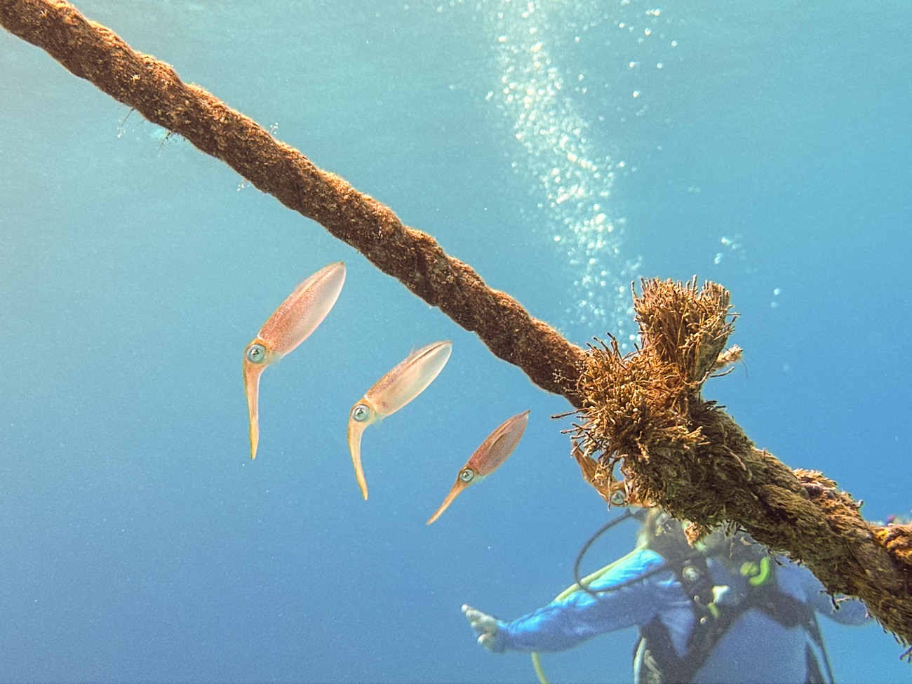 We saw these cool squid hanging out near the line of the boat.