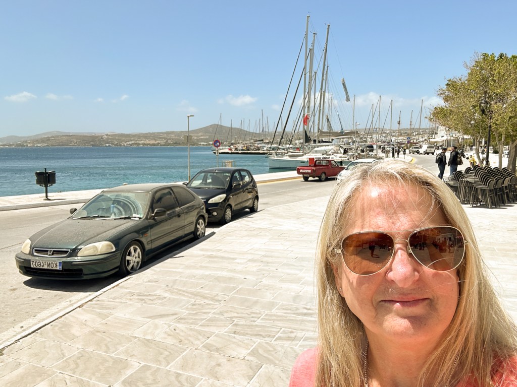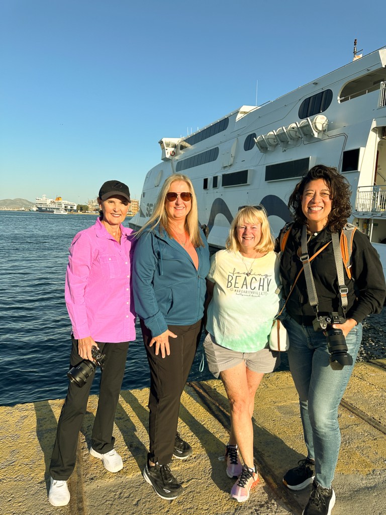 That night Me Ra & Brian had a surprise for us, which kinda fell flat. It was a Grecian BBQ at Nico’s house (Nico owned the hotel we stayed in). But to get there, we had to drive on the worst bumpy, rocky, winding roads to what felt like the end of the earth. And once we got there, we found out that there wasn’t a bathroom. Only “au natural”. OK, it was pretty gorgeous and the food was great. But, the drivers wanted to leave before sunset so we could find our way home.