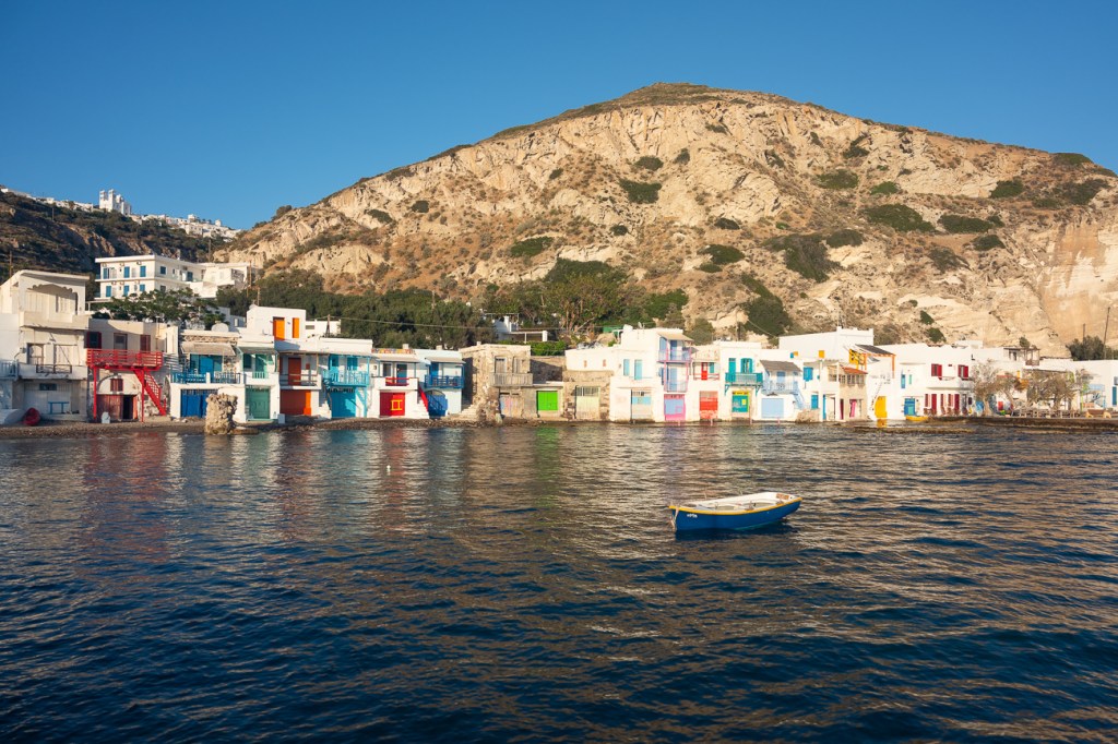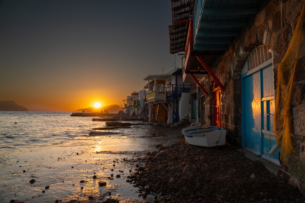 At sunset we went to the fishing village of Klima. These colorful houses are built directly on the water. Really beautiful.