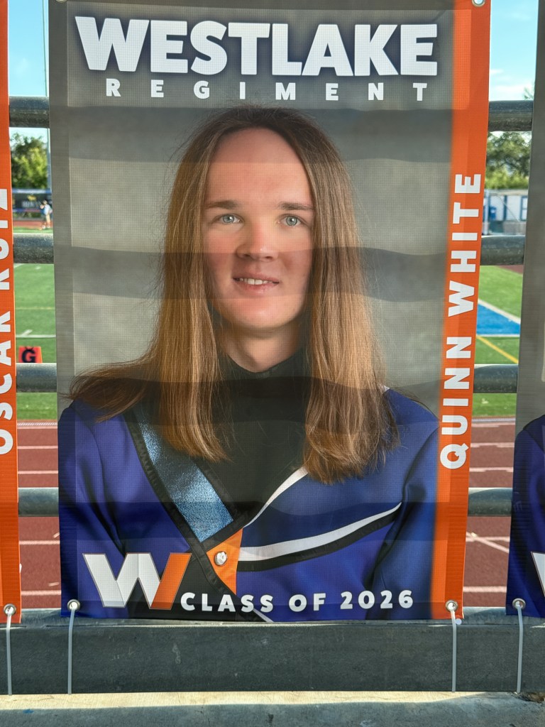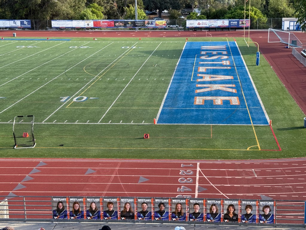 A great tradition at the WHS Stadium is the Seniors in the Regiment, Football Team, and Cheerleaders all get banners hung up in the stadium. This is generally paid for and managed by the Boosters for each group and the Band Banners are so good this year!