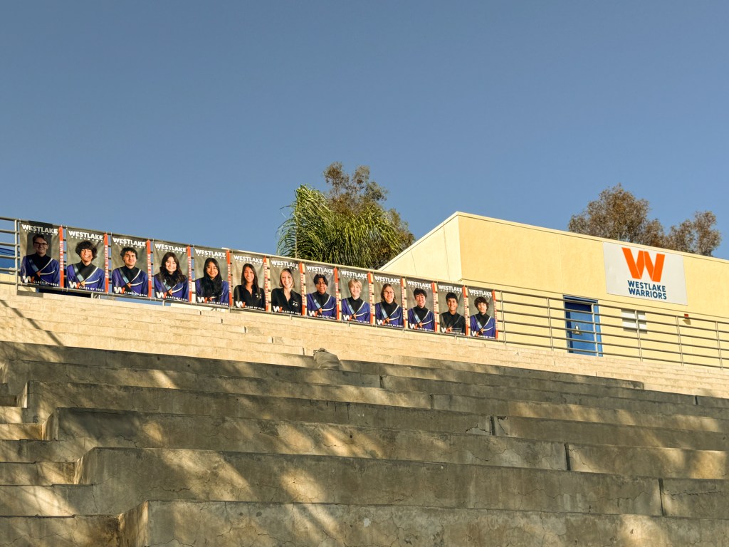 We are lucky that we have a very talented photographer and a graphic artist that took the pictures and created the banners. There are 26 Seniors this year so we needed alot of space to hang the banners! 13 at the top and 13 at the bottom. This is the area where the band sits and plays during games.