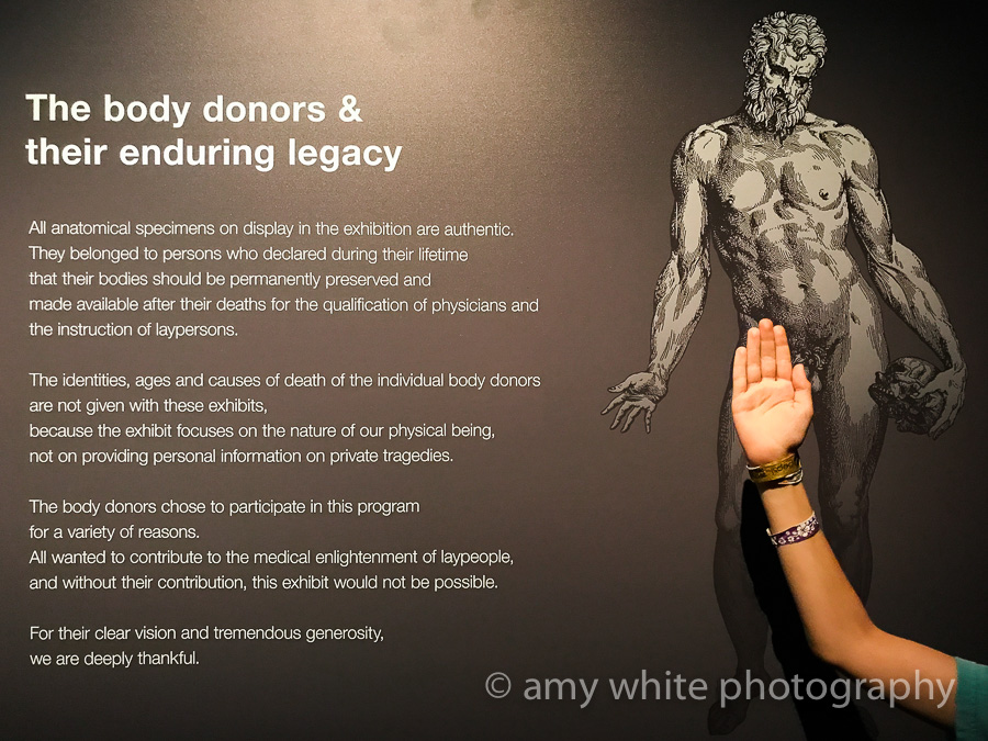 Body World has lots of \”naked\” bodies which I think Quinn found a little awkward. Here he missed the mark in covering up the private area.