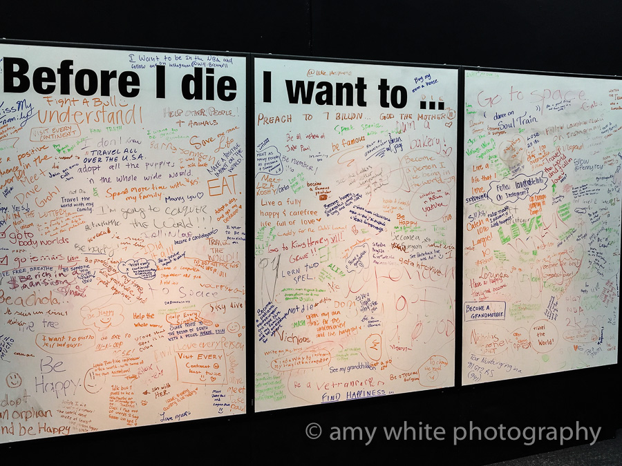 The end of the exhibit had a couple of interesting interactive displays. What do you think Quinn wrote on this one?