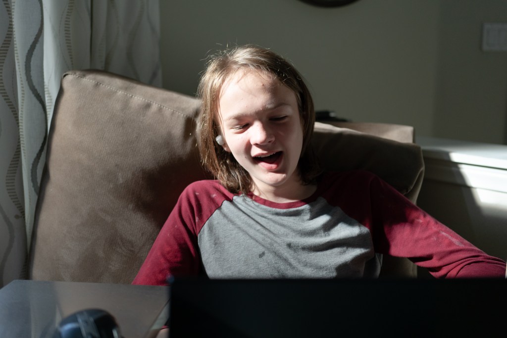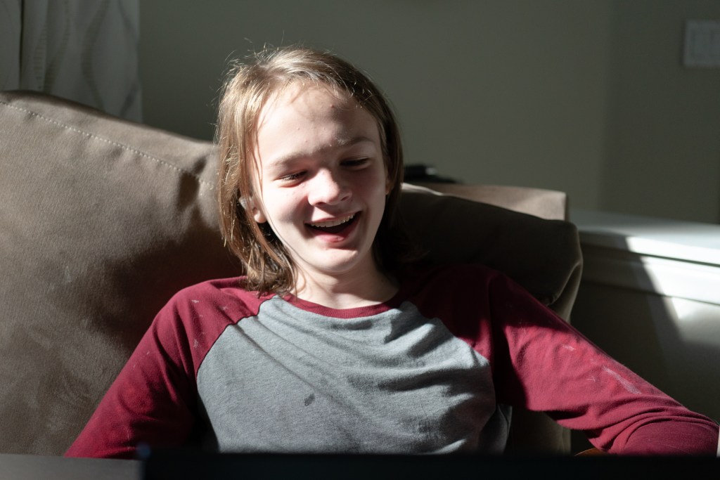 At the orthodontist getting his upper retainer.